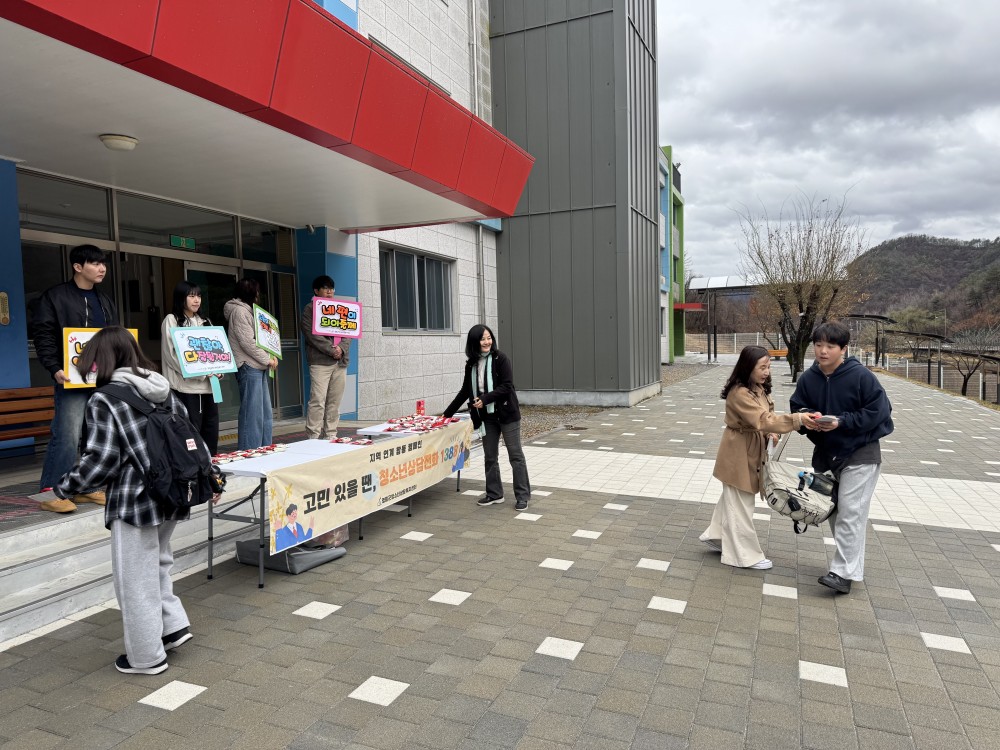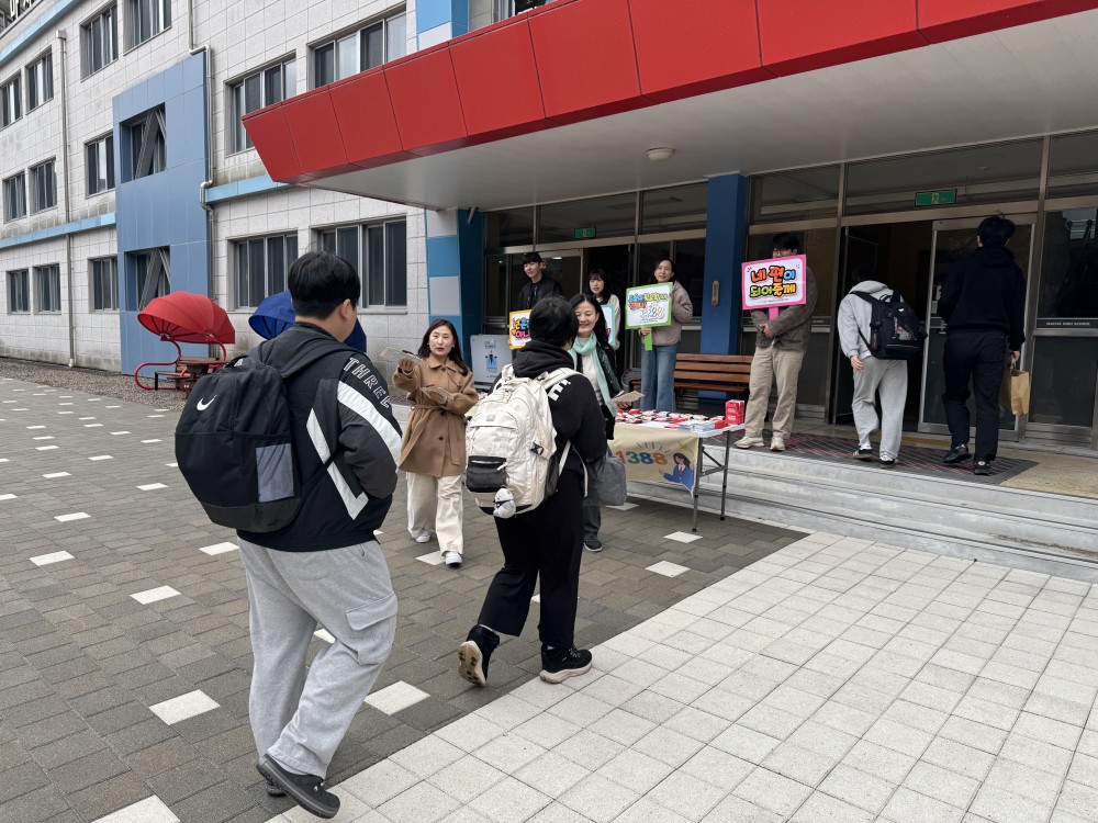 준비한 홍보물을 전달하며 청소년상담복지센터와 1388청소년지원단을 알리고, 도움이 필요할 때 언제든 찾아올 수 있도록 따뜻한 응원의 마음도 함께 전했습니다.